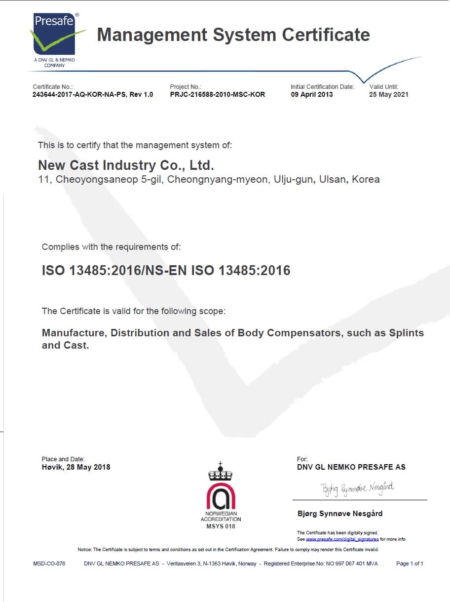 ISO 13485 - New Cast Industry Co., Ltd.